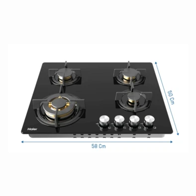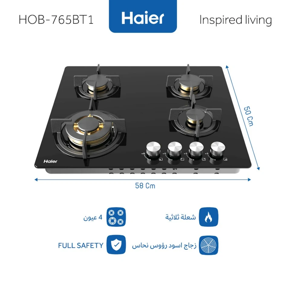 🔹 طباخ هاير 60سم زجاج أسود رؤوس نحاس– الموديل: HOB-765BT1