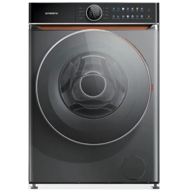 غساله SKYWORTH بسعة 10 كيلو موديل F10458RD باللون السلفر الغامق و الاسود الأنيق