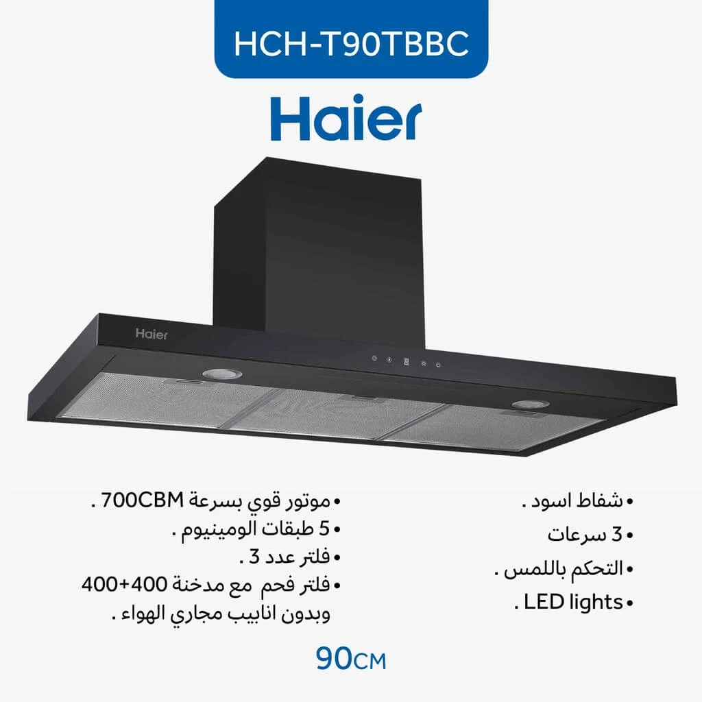 شفاط 90سم هاير اسود وجه زجاج أسود / HCH-T90TBBC
