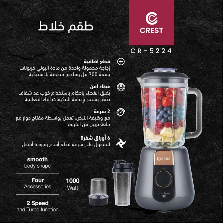 خلاط كريست 1000 واط سعة 1.5 لتر وعاء زجاج / CR-5224