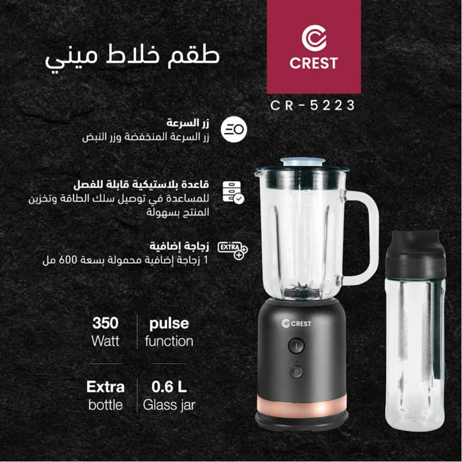 خلاط كريست 350 واط سعة 0.6 لتر وعاء زجاج / CR-5223