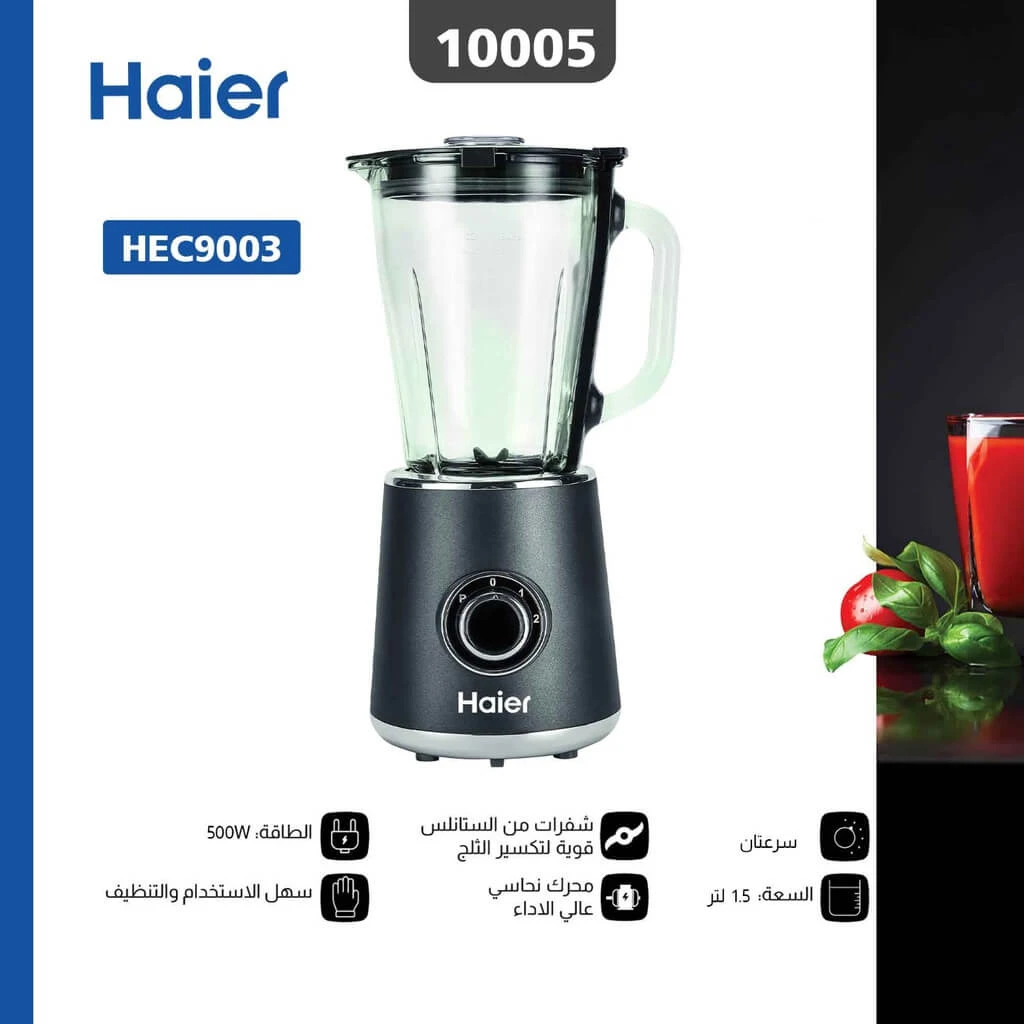 خلاط هاير 500 واط سعة 1.5 لتر وعاء زجاج / HEC9003