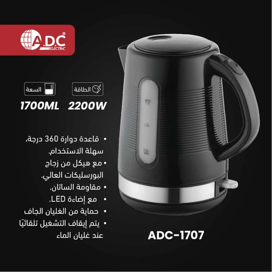 استمتع بغلي الماء بسرعة وكفاءة مع ADC-1707 المصممة لتمنحك أداءً عاليًا وأناقة في كل استخدام.
