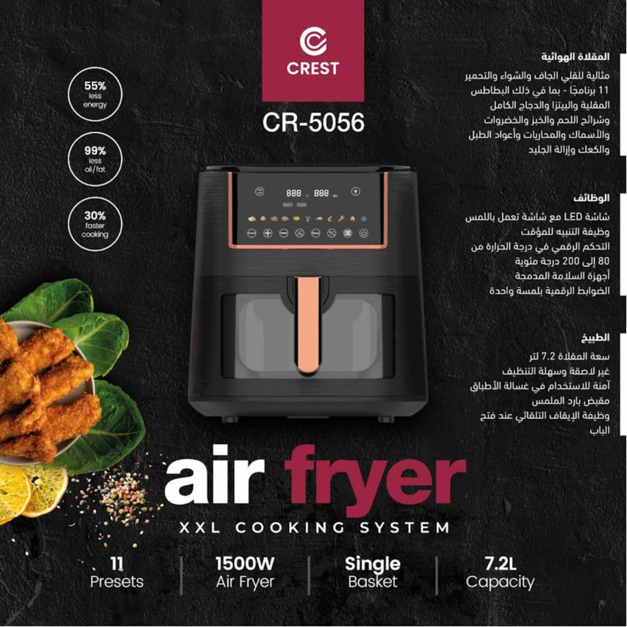 قلاية هوائية كريست CR-5056 – سعة 7.2 لتر بنظام طبخ XXL
