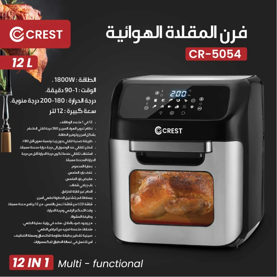 مقلى هواء كريست نظام أرفف 12 لتر / CR-5054
