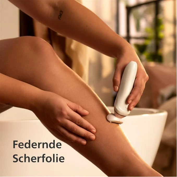 • أداة تشذيب دائرية: أطراف أمام وخلف رقاقة الحلاقة تحافظ على انزلاق ماكينة الحلاقة بسلاسة على بشرتك. 78% من النساء يوافقن على أن أطراف التشذيب الدائرية تمنع الخدوش.