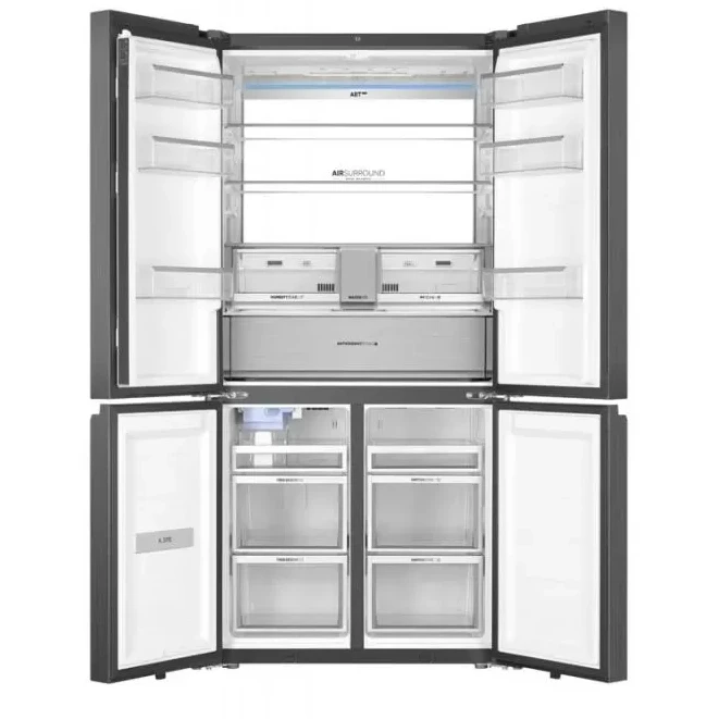 ارتقِ بمطبخك إلى مستوى جديد من الأناقة والكفاءة مع ثلاجة هاير HRF-825FB ذات التصميم الزجاجي الأسود الأنيق. تجمع هذه الثلاجة بين المظهر العصري والتكنولوجيا المتطورة لتمنحك تجربة تبريد فائقة تناسب العائلات الكبيرة أو المستخدمين الذين يبحثون عن أداء مثالي وسعة تخزين ضخمة.
